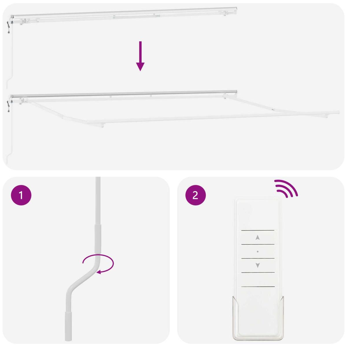Il sera très facile d'ouvrir ou de refermer le store grâce à la manivelle située à gauche du store. Le store peut être ouvert partiellement ou entièrement jusqu'à sa projection maximale. Les bras spécialement conçus permettent de modifier l'inclinaison du store de quasi-horizontale à une inclinaison de 45° par rapport à l'horizontale.