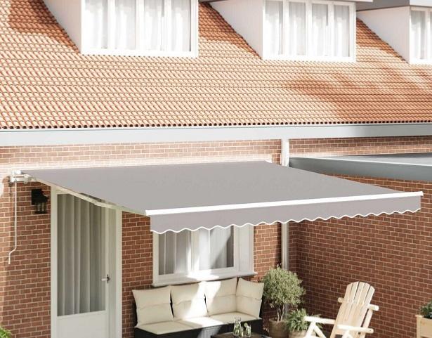 STORE BANNE 4,00 x 3,00 mètres, châssis blanc, toile gris clair, MOTORISE avec télécommande.