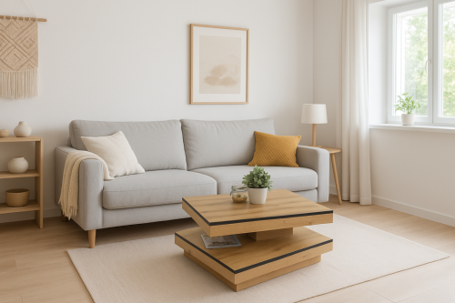 TABLE basse carrée 80 cm, pivotante, couleur chêne clair